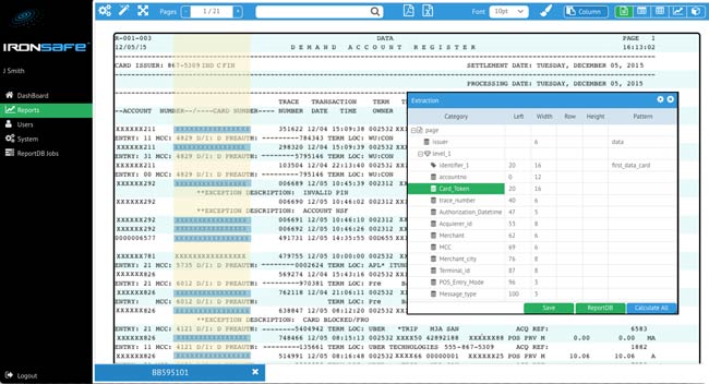 IronSafe automatically extracts report content into database tables that you can then extract to CSV, or use to populate your own or thirdparty analytical tools: